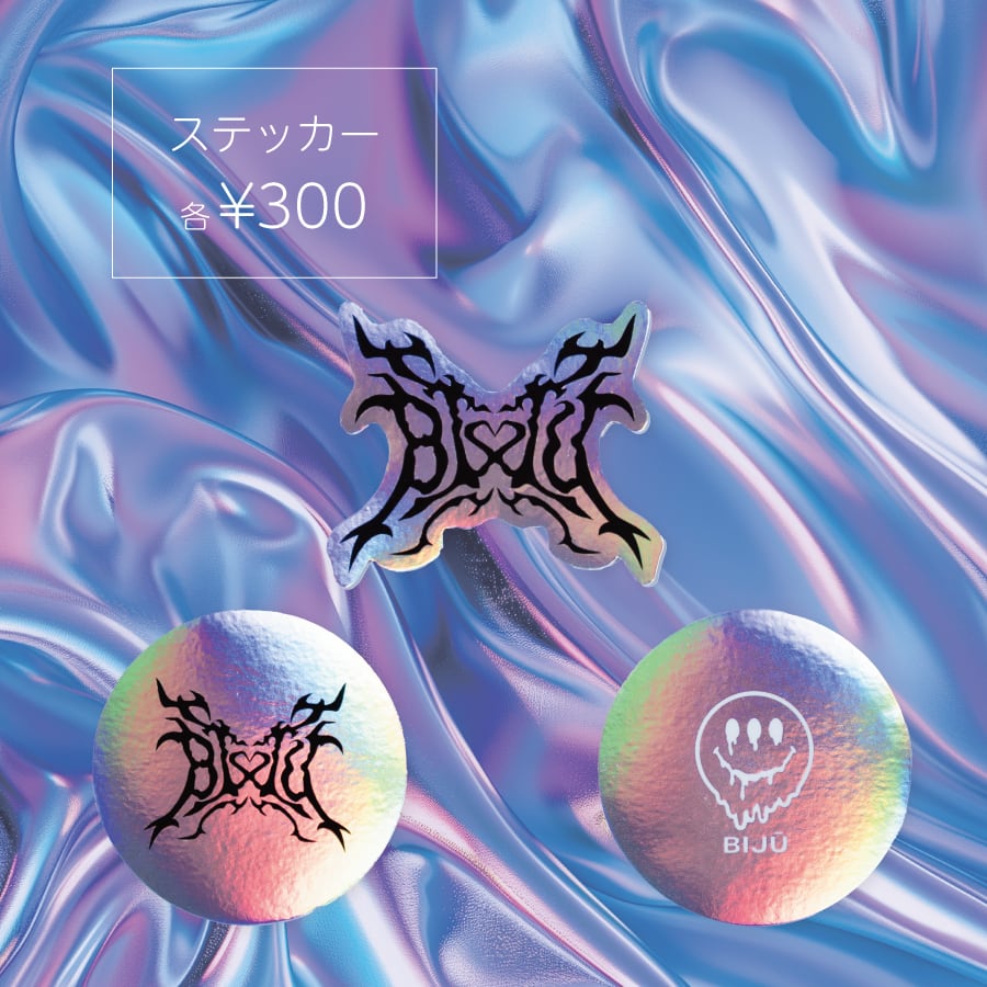 BIJŪのロゴをプリントしたホログラムステッカー。
